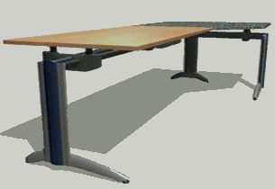 Die Konstruktion der PrimASS-Konsole mit voneinander unabhängig verstellbaren Teleskophülsen und „drehbarer“ Lagerung der Tischplatte ermöglicht eine integrierte Höhen- und Neigungsverstellung des Tisches schon in der „Serienausstattung“, also ohne zusätzliche Anbauteile. Als „Luxusausführung“ gibt es dann nur noch eine Komfortverstellung über Handkurbel. Weiterhin entwickelten wir eine elektrische Verstellung mit 5 Positionsspeichern bis ins Prototypenstadium.